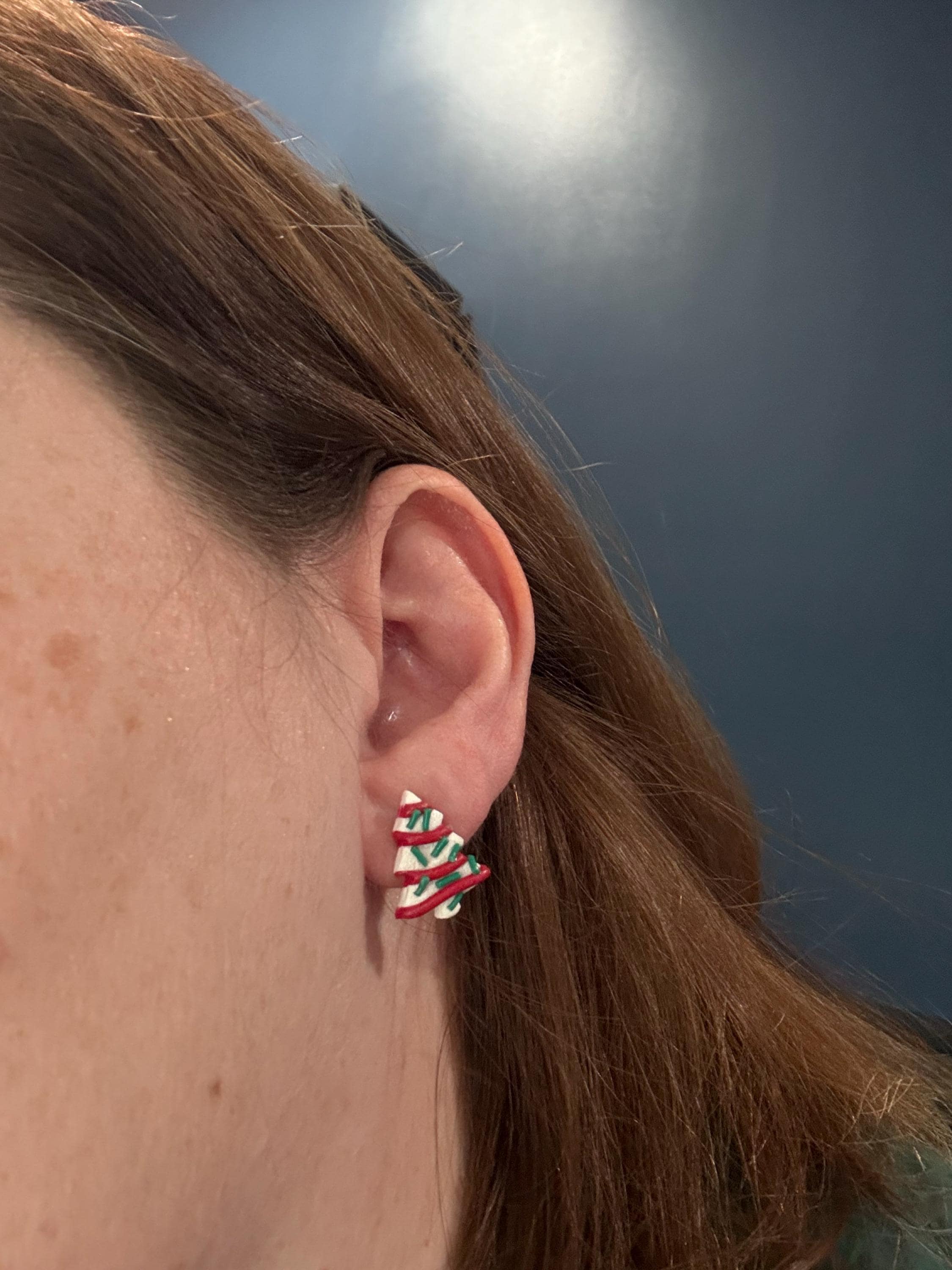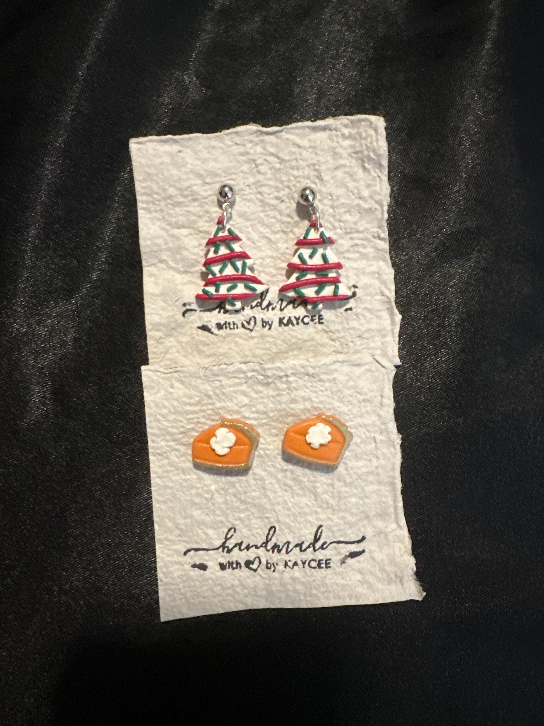 Handmade polymer clay Christmas tree earrings. I made these in two styles, studs or dangles.